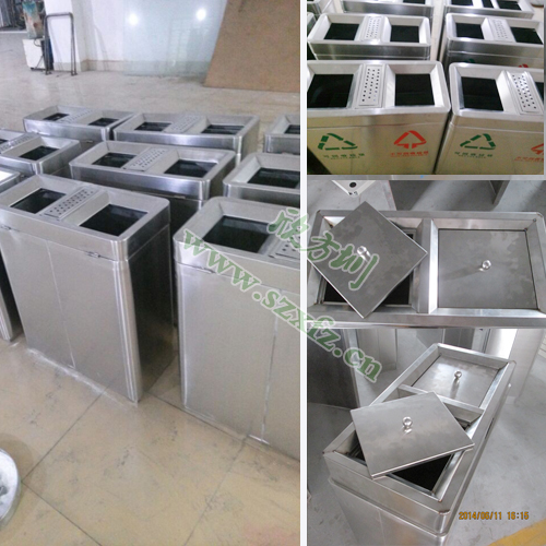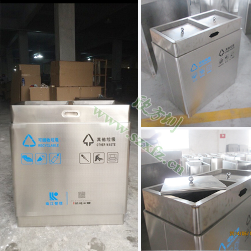 這批C185分類環(huán)保垃圾桶是采用304#優(yōu)質(zhì)不銹鋼材料模壓成型,厚度足1.2mm,里面配置了厚度為0.4mm的鍍鋅板內(nèi)桶,堅固耐用,不易破損。垃圾桶外觀為方形,閃爍著金屬的亮澤,高雅美觀,在制作方面也有精良的做工,注重細節(jié)的處理,做到無利口,不傷手! 桶身雙分類,正面絲印有“不可回收”和“其他垃圾”的分類標(biāo)志,具有耐火安全,抗高低溫,適合各種惡劣氣候條件,再加上產(chǎn)品表面光滑,亮麗廣泛適用于各種場所,是電梯口、寫字樓、學(xué)校、物業(yè)、賓館、酒店、機場、汽車站等擺放場地的首選。