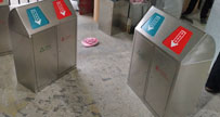 戶外不銹鋼三分類果皮箱現場安裝擺放圖