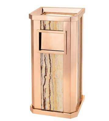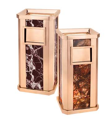 欣方圳為深圳嶺南天潤物業公司提供了一批室內垃圾桶,材質有鈦金類和鐵板噴塑類,外觀精美,使用價值高。 D272皇家座地煙灰桶規格:300*300*685,D295垃圾桶的規格為310*310*740,采用不銹鋼經鍍鈦處理,專業除