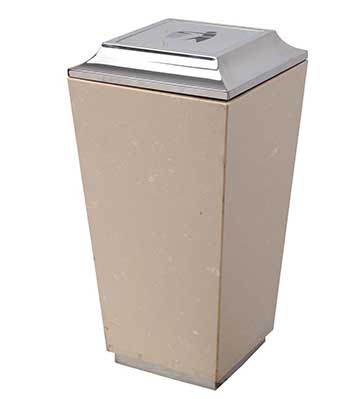 欣方圳為深圳嶺南天潤物業公司提供了一批室內垃圾桶,材質有鈦金類和鐵板噴塑類,外觀精美,使用價值高。 D272皇家座地煙灰桶規格:300*300*685,D295垃圾桶的規格為310*310*740,采用不銹鋼經鍍鈦處理,專業除