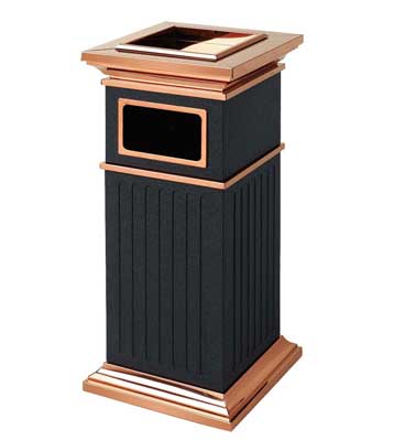 欣方圳為深圳嶺南天潤物業公司提供了一批室內垃圾桶,材質有鈦金類和鐵板噴塑類,外觀精美,使用價值高。 D272皇家座地煙灰桶規格:300*300*685,D295垃圾桶的規格為310*310*740,采用不銹鋼經鍍鈦處理,專業除