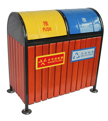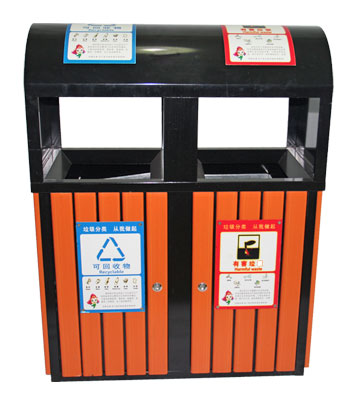 鋼木垃圾桶 鋼木選用防腐木、進口山樟木或塑木,經除蟲、防腐,烘干處理后加工成型。桶身框架冷軋鋼經酸洗磷化制作