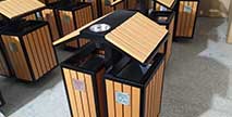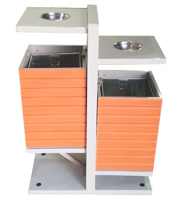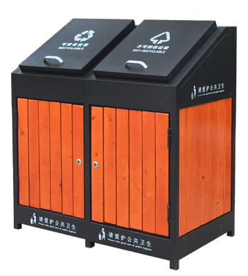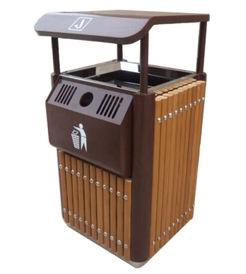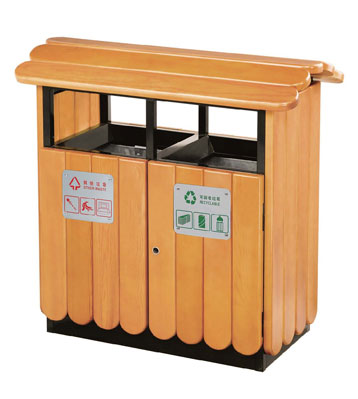 鋼木垃圾桶 鋼木選用防腐木、進口山樟木或塑木,經除蟲、防腐,烘干處理后加工成型。桶身框架冷軋鋼經酸洗磷化制作