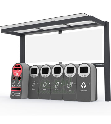 新款多分類果皮箱垃圾分類收集容器太陽能供電,智能滿溢功能通過平臺遠程終端提醒: