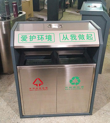 • 產品材質:鋼板噴塑分類垃圾桶采用優質冷軋鋼經除油-除銹-表調-磷化處理后,表面采用汽車靜電粉末噴漆工藝,噴塑粉主要有丙烯酸粉末、聚酯粉末等。雙層防銹,漆面色澤耐久;