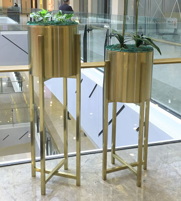 商場電鍍香檳色不銹鋼花盆圖