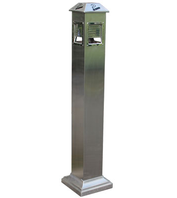 不銹鋼方形滅煙柱-戶外公共煙灰收集桶