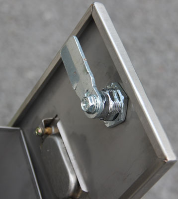 戶外公共場所不銹鋼滅煙柱方形設計,大投口加面板鉚釘,面板有孔位便于未燃燒盡煙的空氣流通,預留小的煙蒂投口確保精準投放。