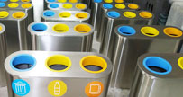 室內斜面投口地鐵不銹鋼三分類垃圾桶批量生產圖