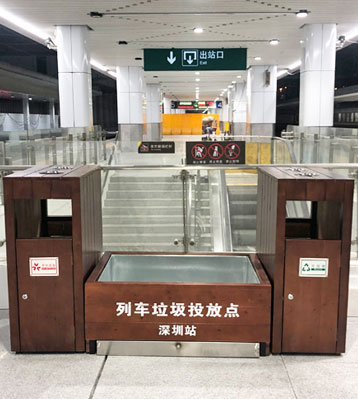 深圳東站列車站臺垃圾桶打造清潔旅途環境