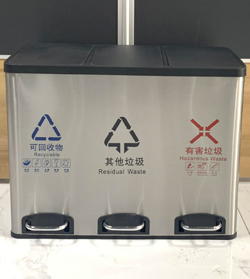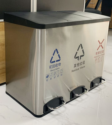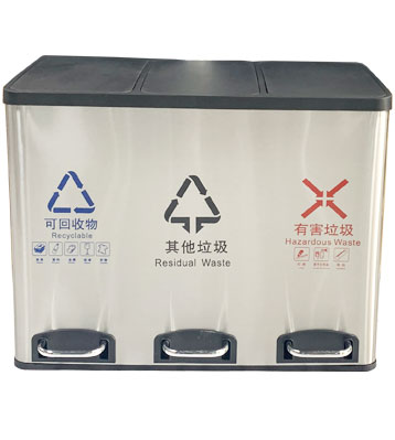 • 使用范圍:45L小區家庭不銹鋼三分類室內垃圾桶廣泛應用于酒店、會所、咖啡廳、休閑中心、家用、賓館等場所擺放的首選。