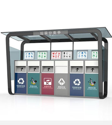 • 使用范圍:垃圾六分類亭可帶太陽能夜間照明,LED屏,投口自動感應,稱重,滿溢短信提醒等功能。高檔亮麗,是物業小區、居民樓院、社區街道、單位庭院或街面商鋪等戶外垃圾分類收集場所擺放的首選。