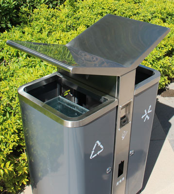 • 產品材質:戶外分類式垃圾箱采用足厚不銹鋼材料激光切割成型,框架為不銹鋼本色,2分類外桶做灰色烤漆防銹耐用。底座加高防潮延長鍍鋅內桶使用時間,展翼桶頭新穎美觀。戶外日曬雨淋防銹,不易破損;耐火安全,抗高低溫,適合各種惡劣氣候條件;金屬亮澤,高雅美觀,廣泛適用于各種場所;內外表面光潔,減少垃圾殘留,易于清潔;配置鍍鋅板內桶,便于垃圾清倒;