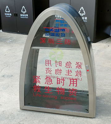 深圳應急、深圳三防水域邊防汛應急救援物資柜,采用304啞光拉絲加厚不銹鋼材質焊接成型,5MM鋼化玻璃柜門,按跳門鎖開啟設計。