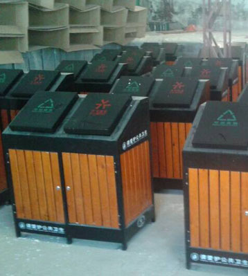 戶外廣場鋼木分類垃圾桶工廠生產圖: