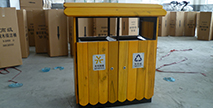 景區屋形鋼木分類垃圾箱產品圖片展示