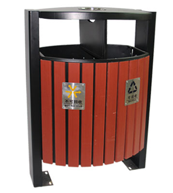欣方圳環保鋼木分類垃圾桶桶身細節圖