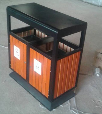 欣方圳社區戶外鋼木分類垃圾桶原材料采用真空泵排除空氣、填充防腐液、加壓滲透、抽真空排出多余防腐液達到先進的防腐防蟲工藝。